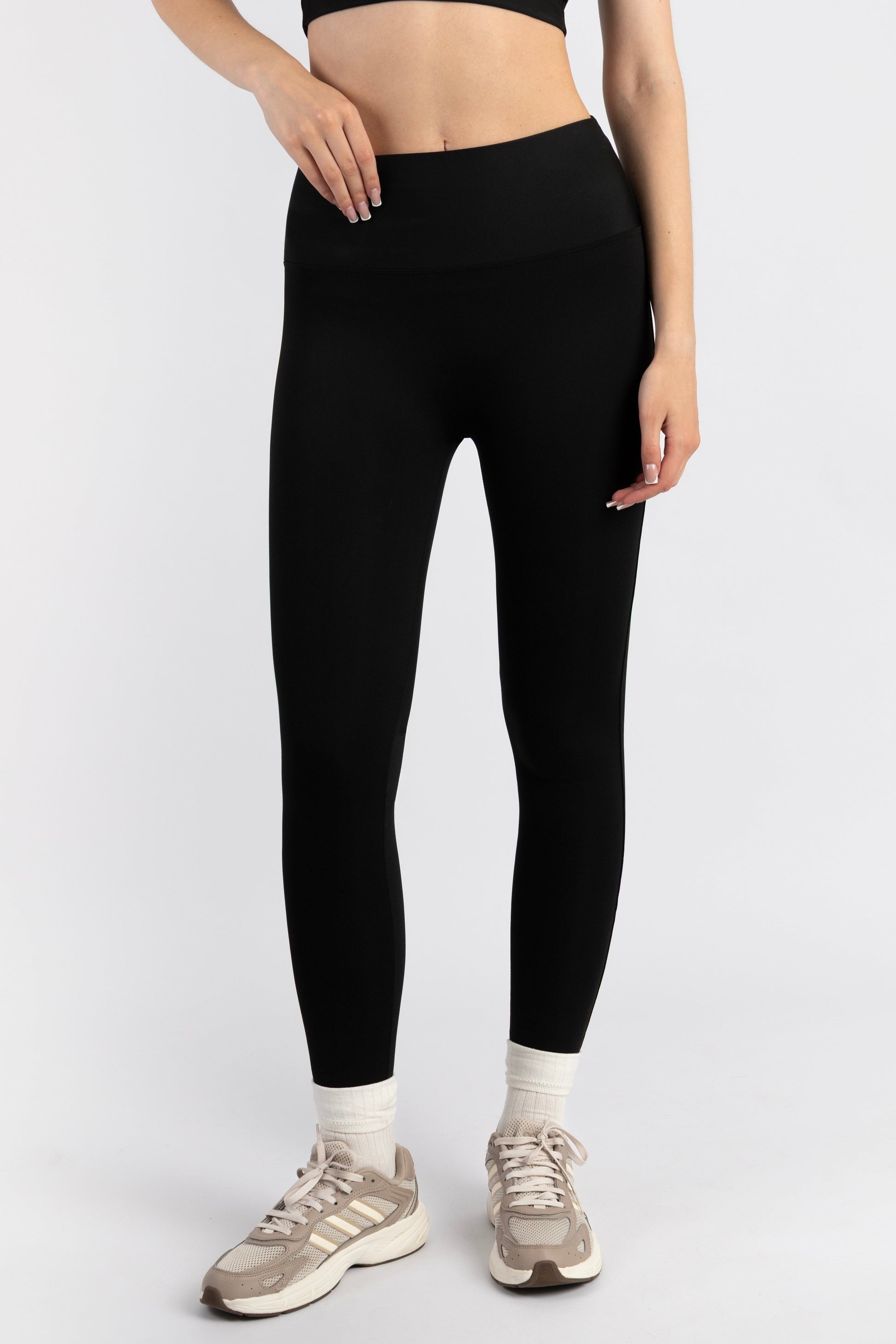 Su pretina extra ancha brinda soporte suave al abdomen y se adapta cómodamente al cuerpo, creando una sensación de seguridad y libertad durante todo el día. En la parte posterior, el diseño incorpora un corte corazón formado por las costuras, que realza naturalmente los glúteos sin scrunch, manteniendo una estética minimalista y sofisticada .